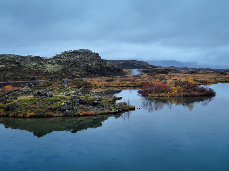 Paths lead to several viewpoints over the lake, which is especially shallow at this point. Look down into the clear water and perhaps spot some ducks around this very pretty part of Myvatn.