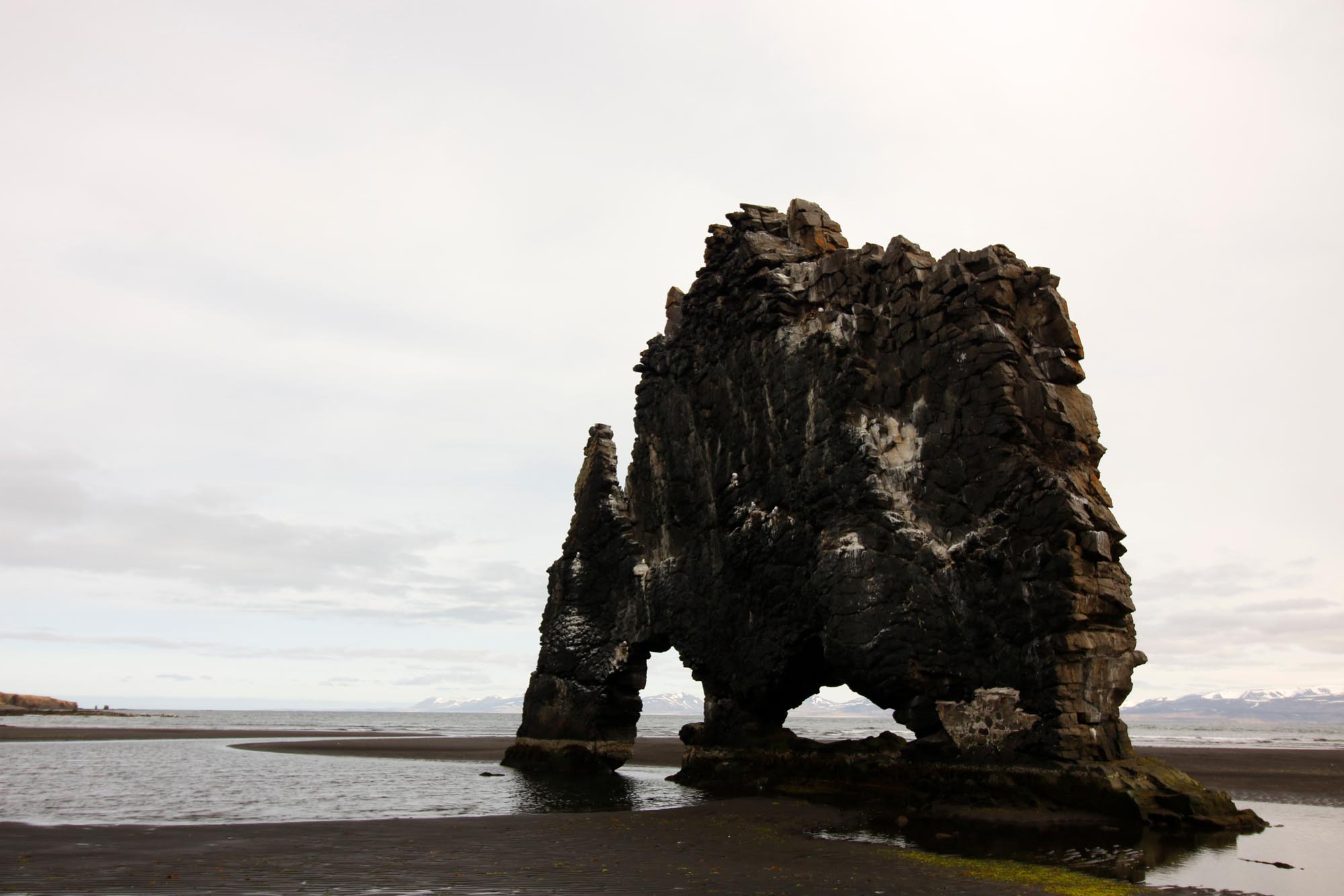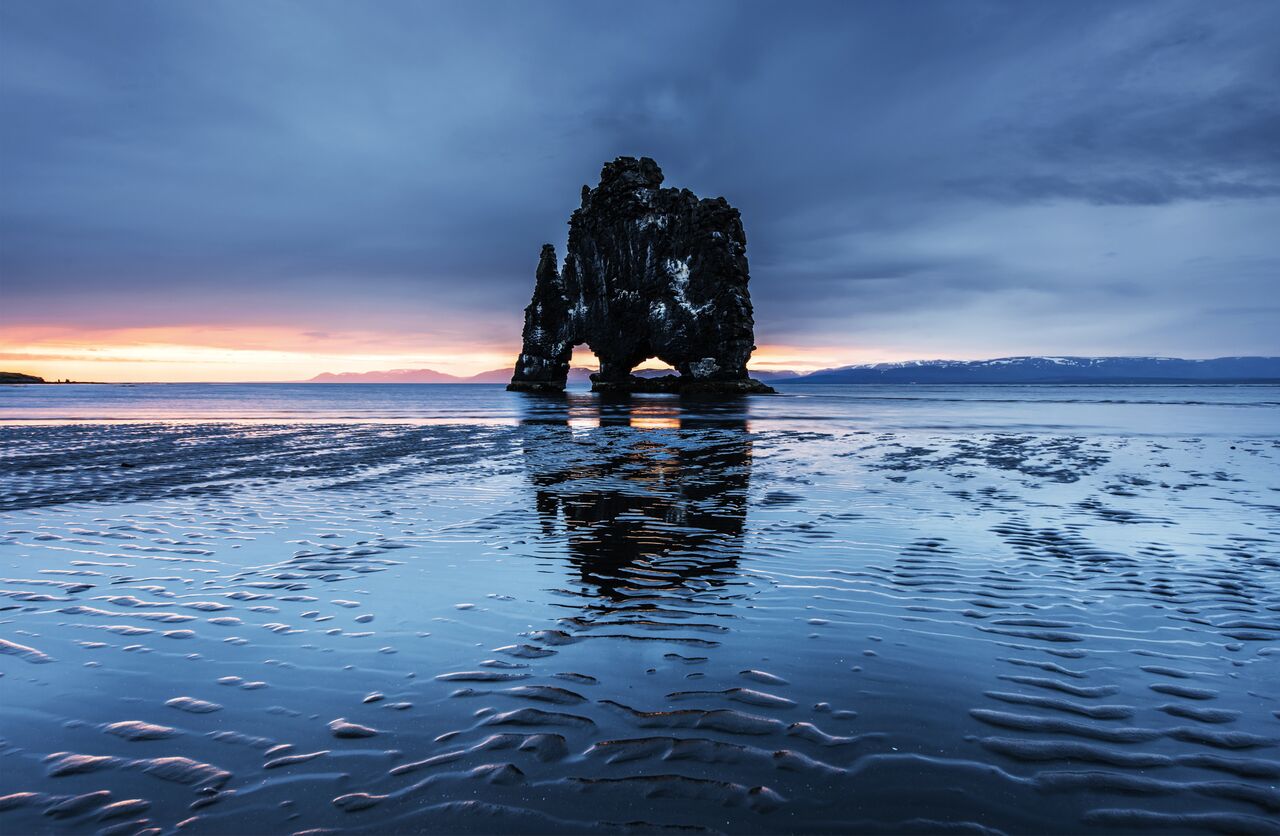 It is often said that this much photographed 15 m high rock stack is what puts Vatnsnes on the map. The offshore rock, which resembles a prehistoric animal, cannot be seen from the road: it is sited between the farms Os and Suluvellir.