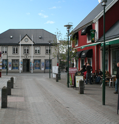 Stands on the corner of Hafnarstraeti and Adalstraeti. Icelandic Falcons (Falco Rusticolus) were kept in a house on this site before being shipped to buyers of the European aristocracy.