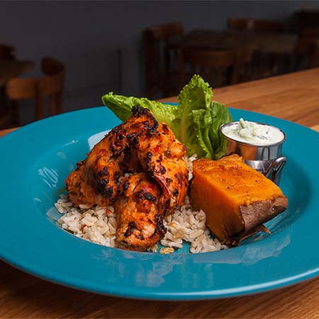 XO’s chicken dishes are tandoori grilled on a stick or wok grilled on a pan.